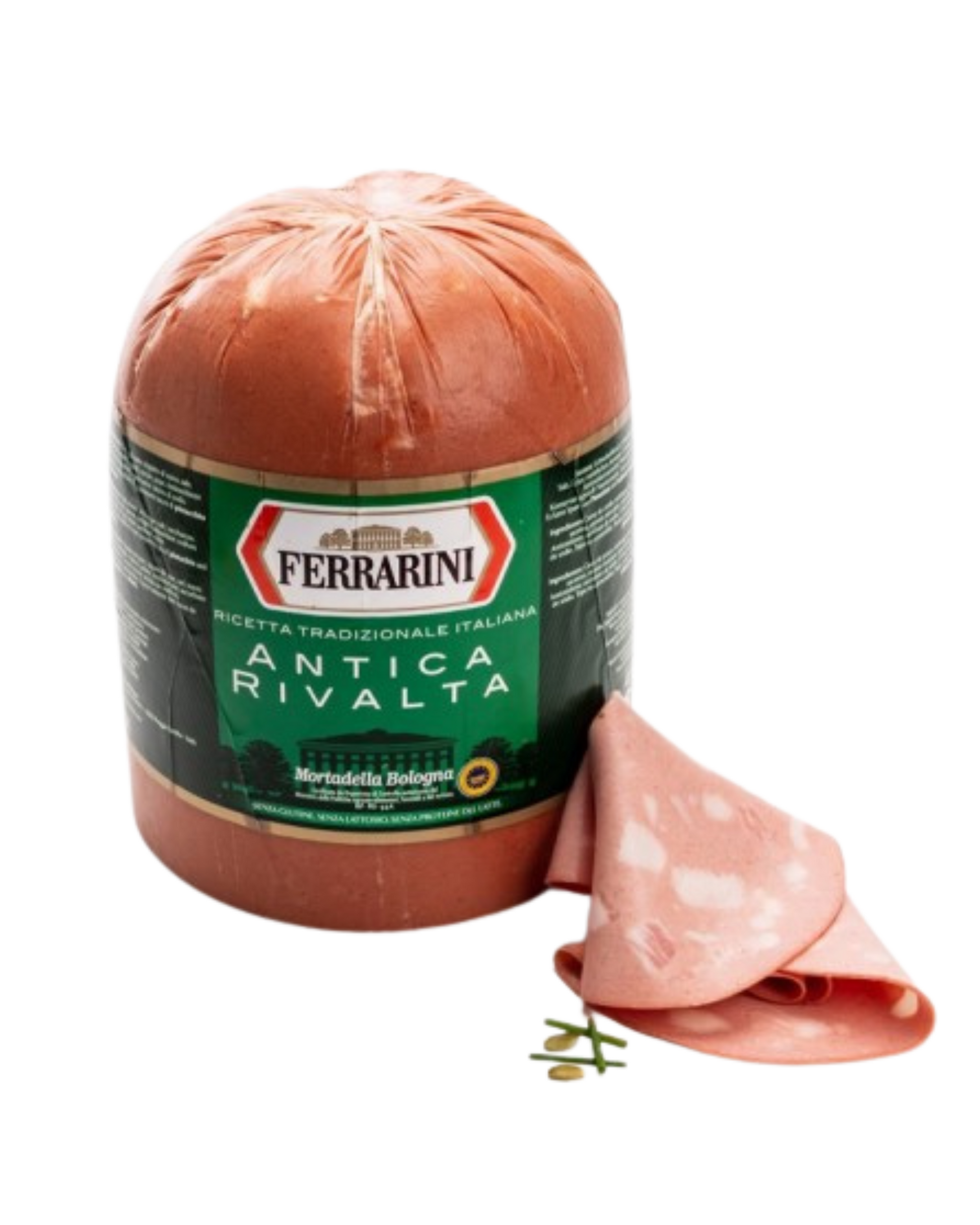 Mortadela de alta calidad elaborada al estilo tradicional de Bolonia (Italia), con una textura fina, sabor suave y notas especiadas.