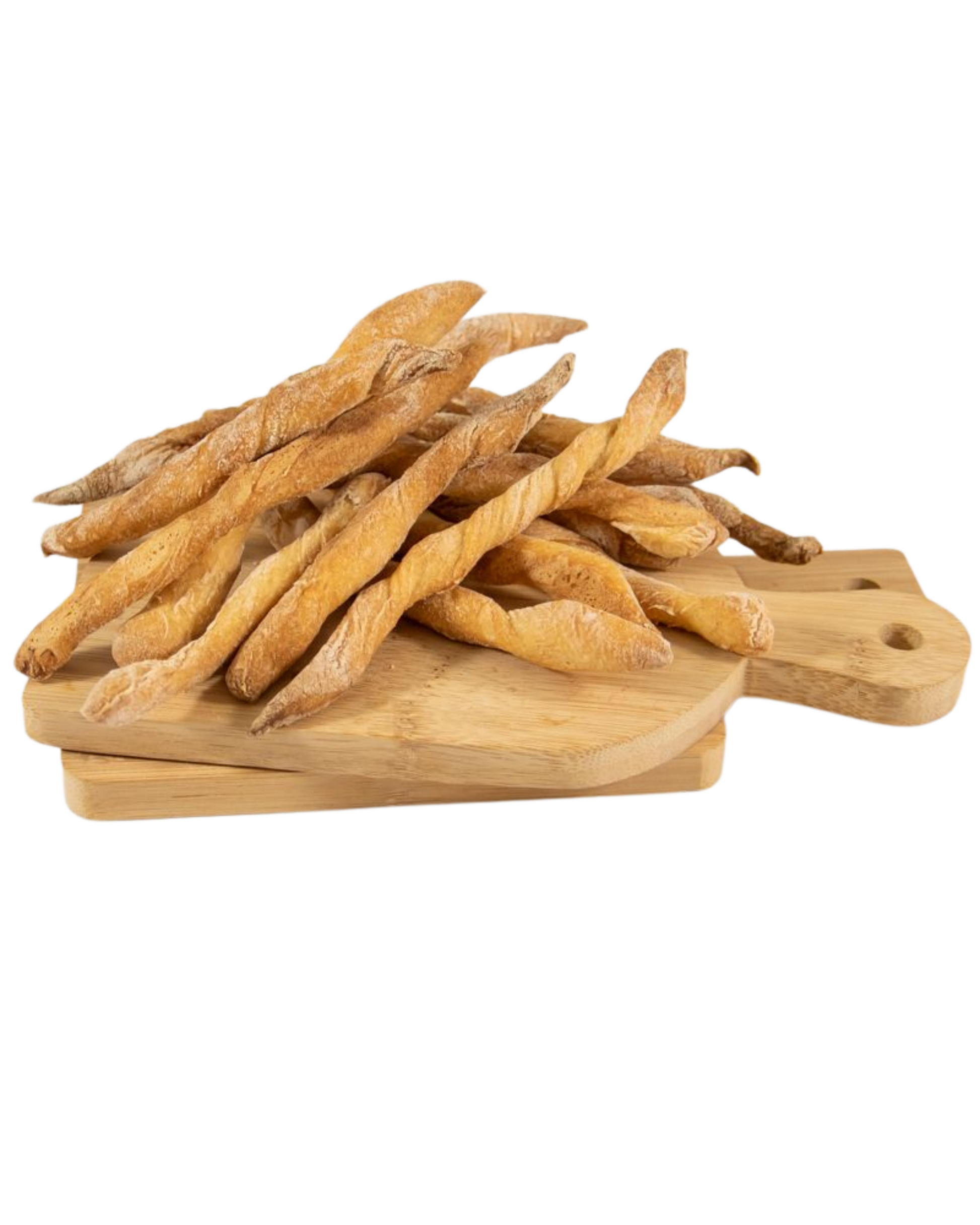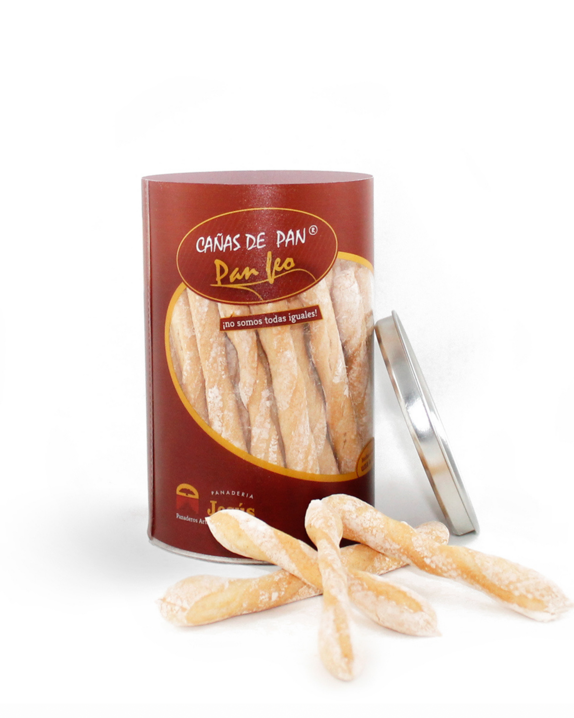 Cañas elaboradas con masa de pan rústico “pan feo”, con una textura crujiente por fuera y tierna por dentro.