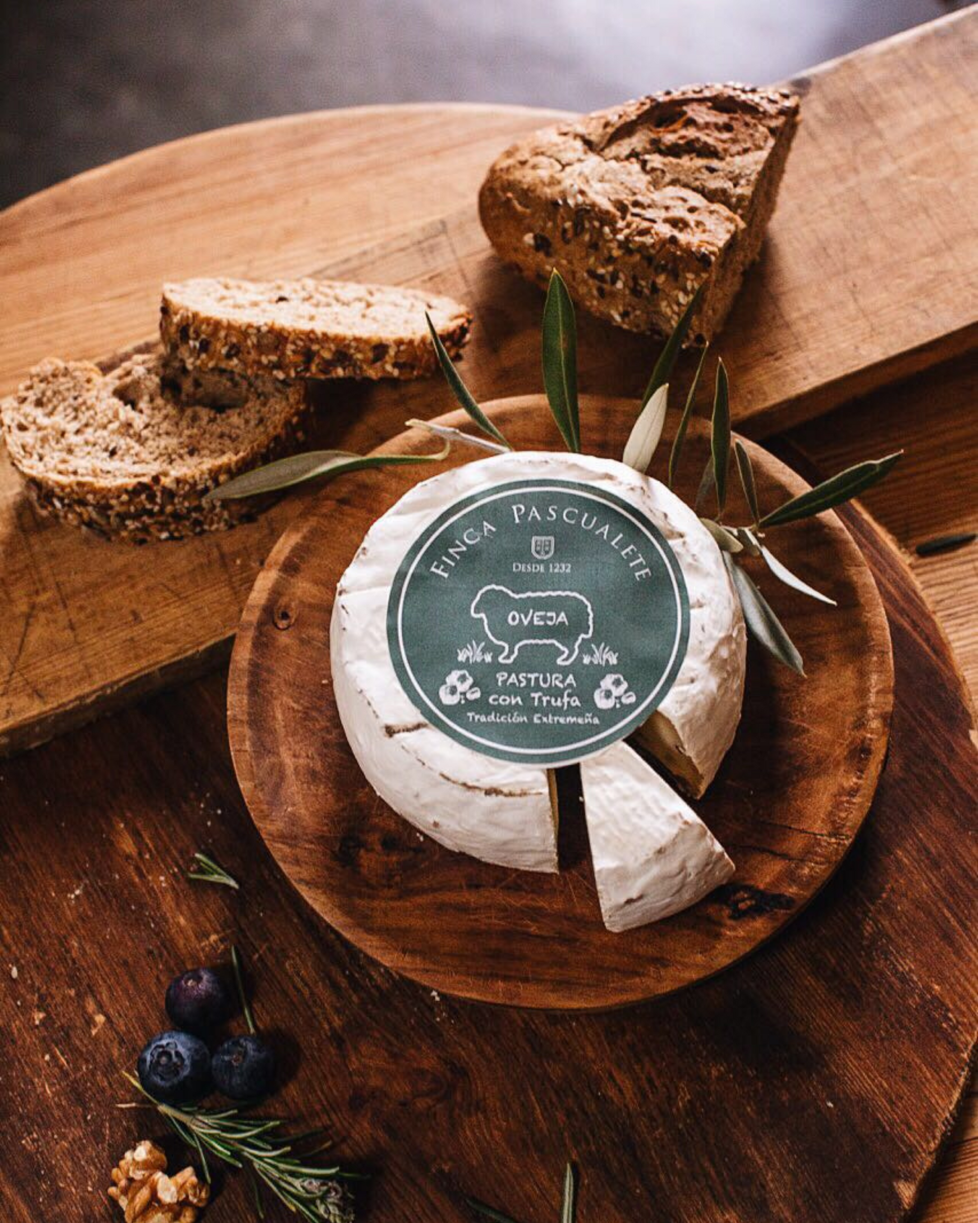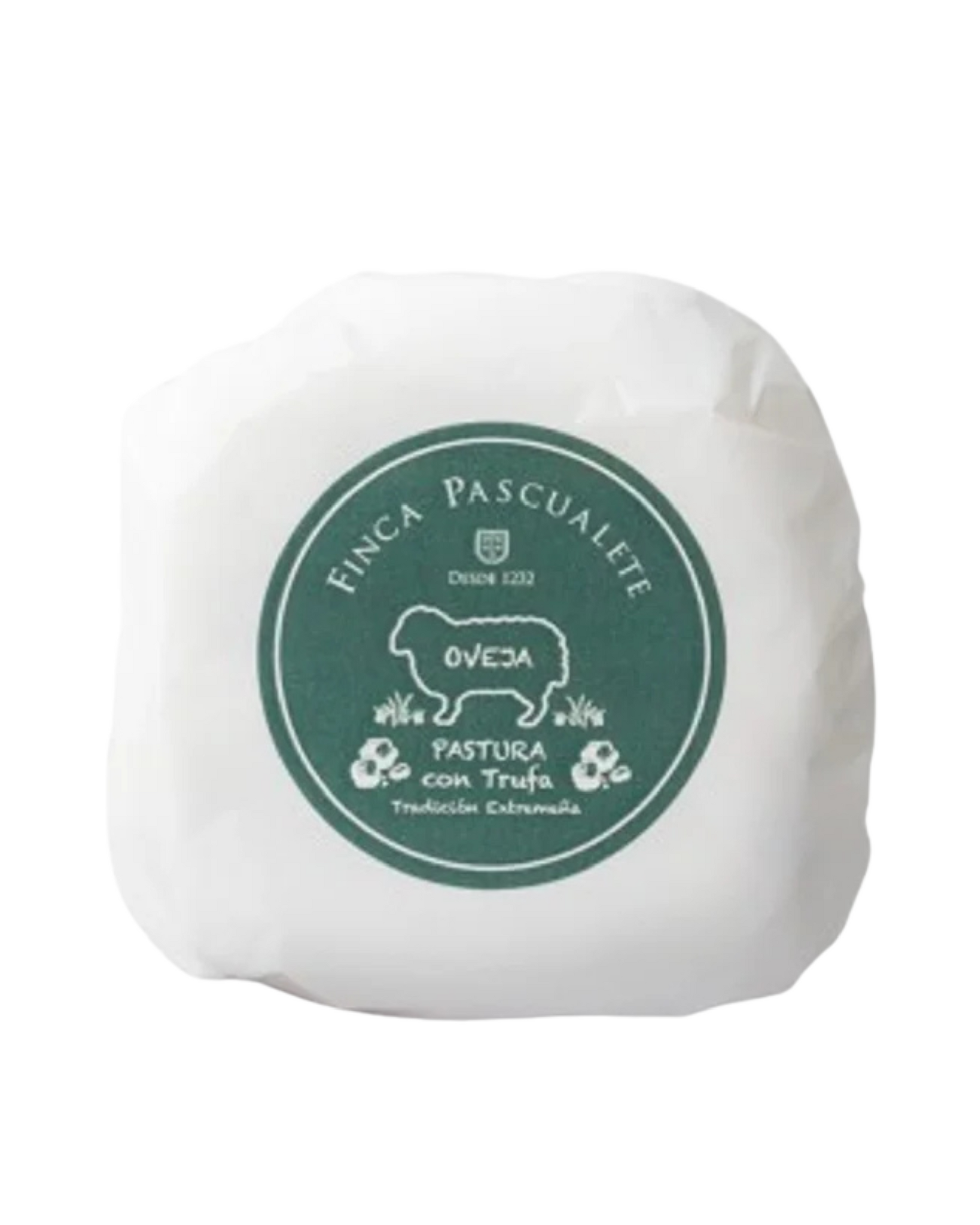 Queso de oveja de pasta blanda enriquecido con auténtica trufa negra, elaborado artesanalmente en Extremadura.