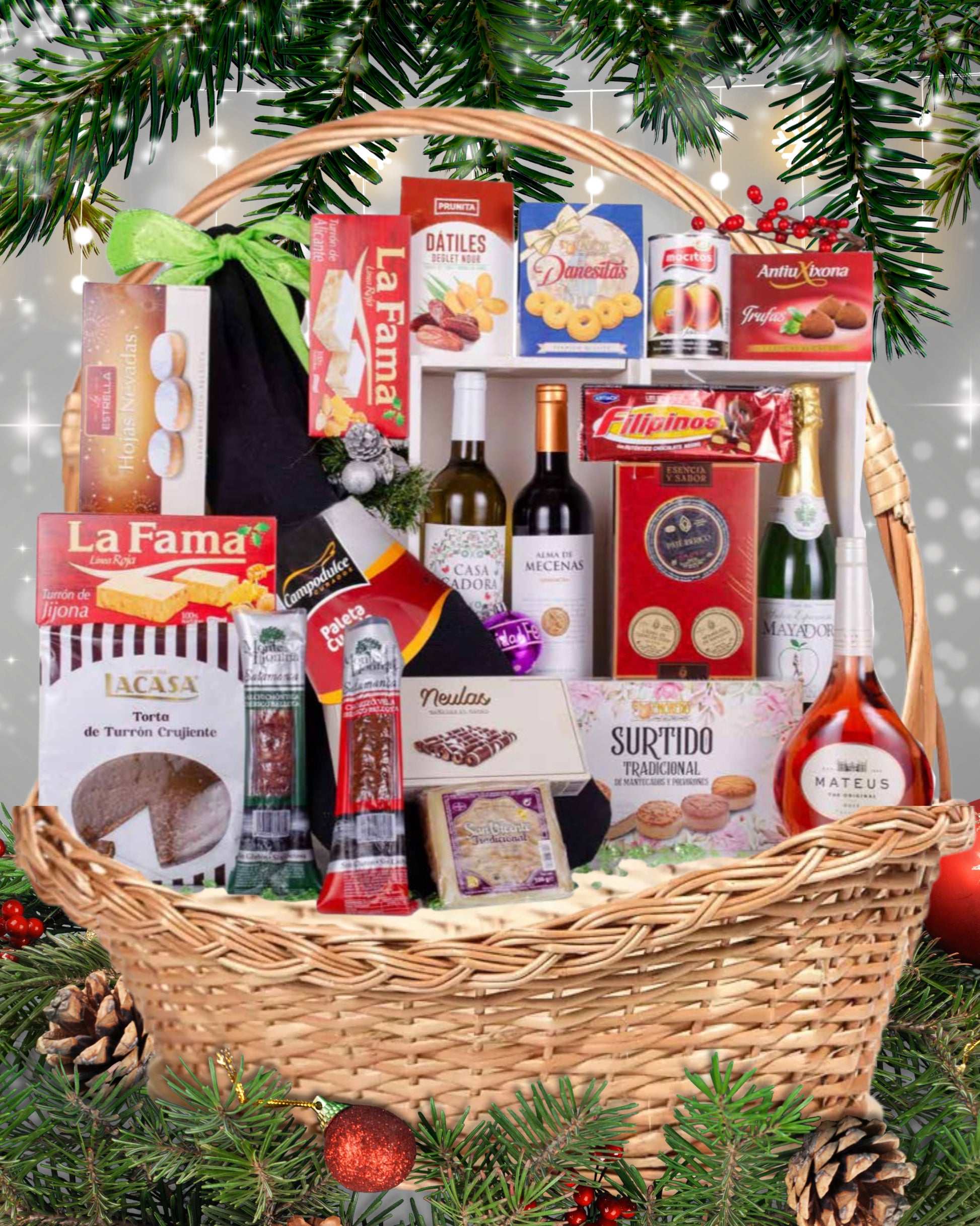 Un lote robusto, completo y visualmente impactante, ideal para quienes desean regalar una experiencia gourmet navideña con sello español. La paleta Campodulce aporta el toque estrella que lo convierte en una cesta de alto valor percibido.