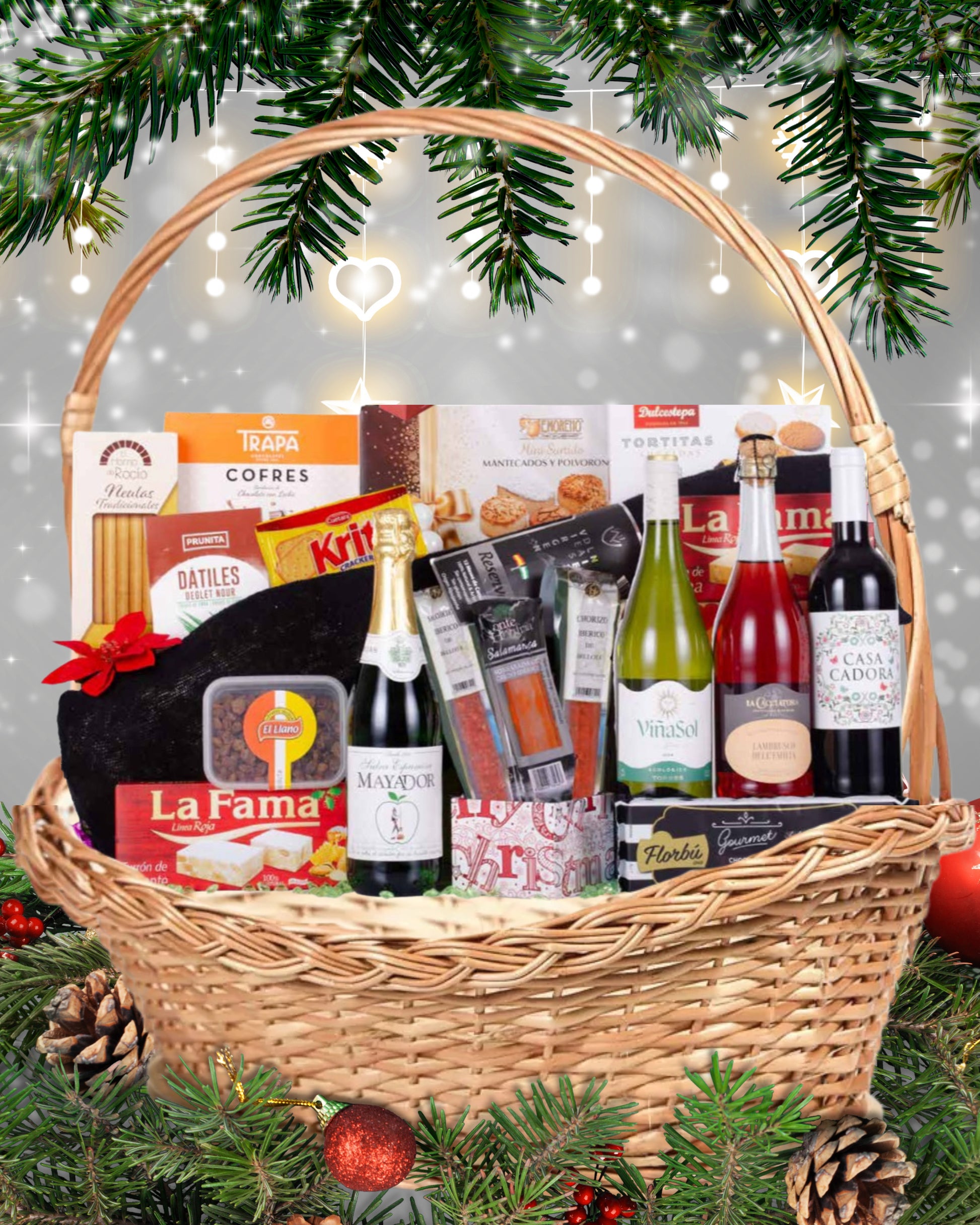 Una cesta sofisticada y equilibrada, ideal para regalar o compartir en celebraciones. La combinación del jamón Trevélez reserva con vinos y dulces de primera categoría la convierte en una opción insignia de Charcutería Juani.
